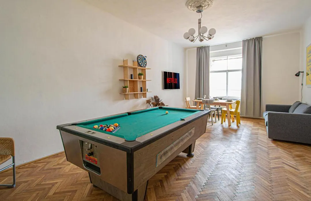 Super Central Billiard And Darts Big Apartment offers a full kitchen which includes an oven and a dishwasher. The nearest airport is Vaclav Havel Prague, 20 km from Super Central Billiard And Darts Big Apartment, and Museum bus station is approximately 400 metres away. Access to darts helps guests stay active during their trip.